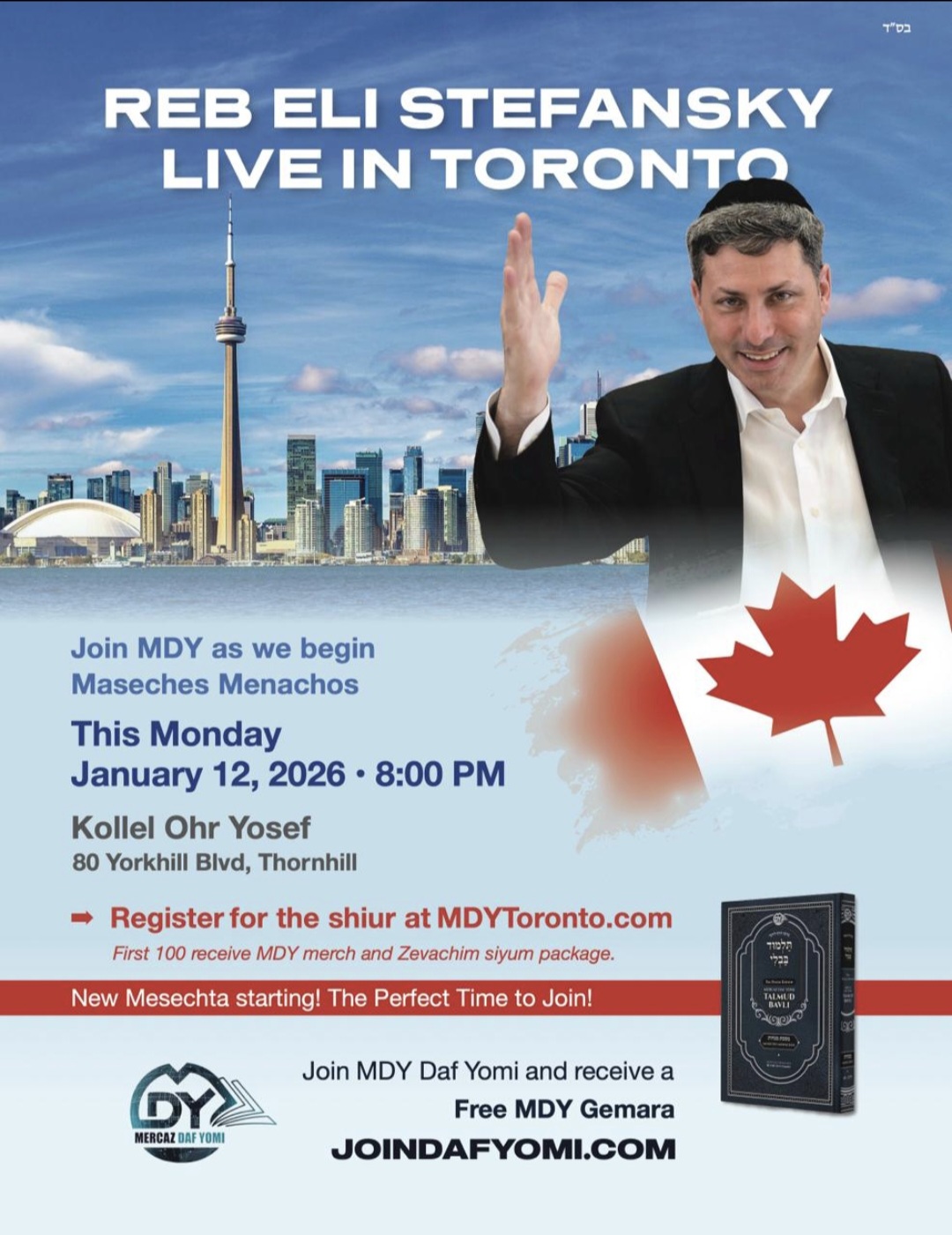 עם פתיחת פרק "התכלת" בדף היומי במסכת מנחות, ב-MDY מציינים את הרגע המיוחד בשיעור יוצא דופן ומעורר השראה. ר׳ אלי סטפנסקי ימסור שיעור דף יומי